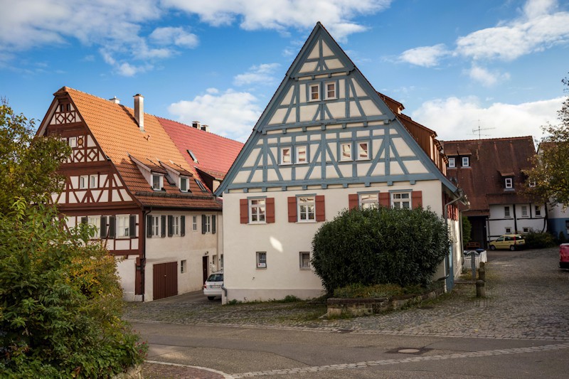 Das Bild zeigt besonders schöne Fachwerkhäuser. Östlich steht das „Sauttersche Haus“ von 1590. An der nordöstlichen Giebelseite ist ein schön geschnitzter Kopf, vermutlich ein „Abwehrzauber“, zu sehen.