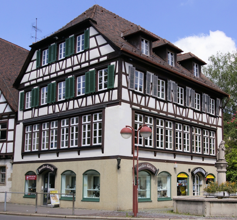 links Textilladen Schwab an der Ecke Kurze Gasse.